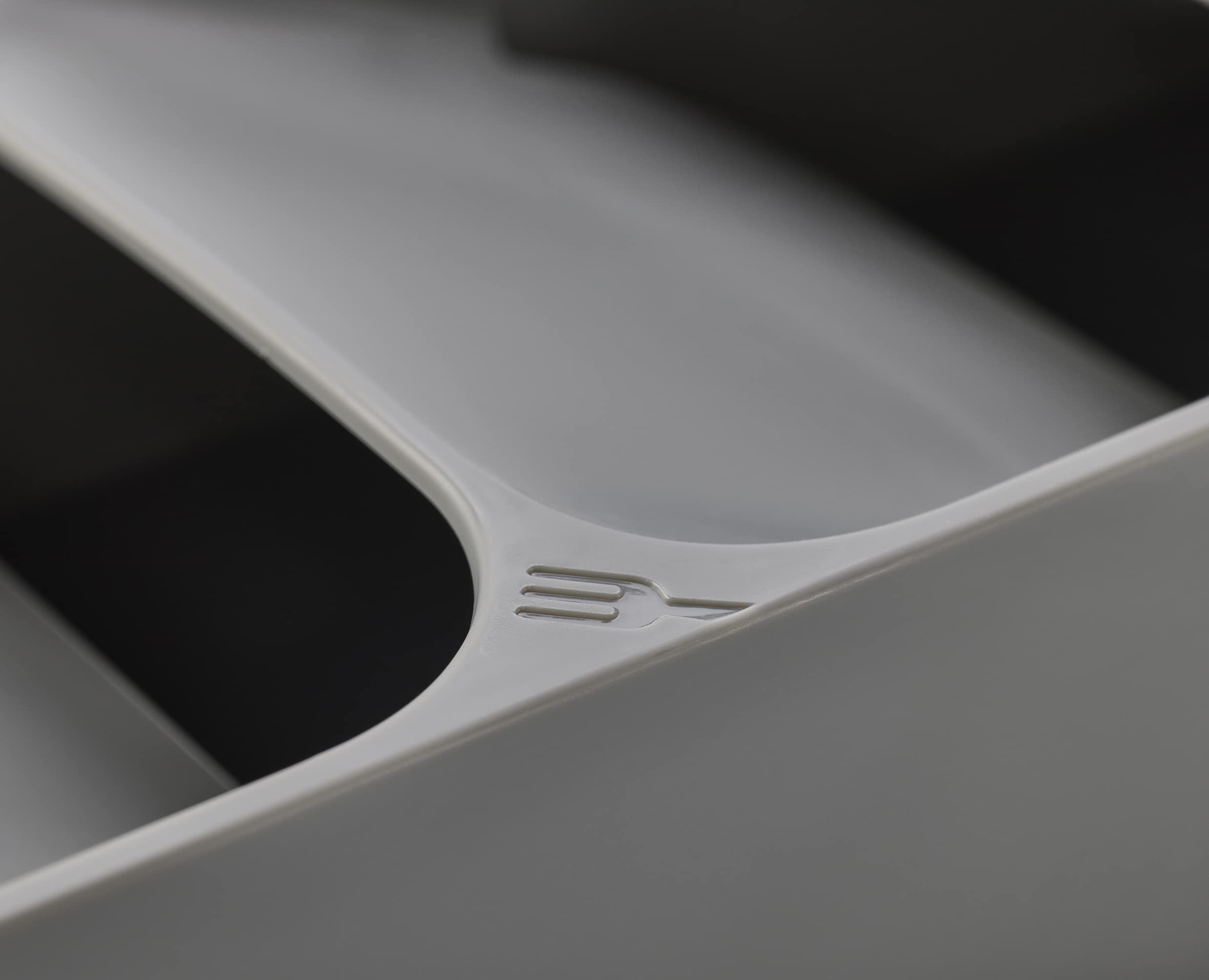 • Storing your cutlery at an angle allows you to store a full set of cutlery in less than half the space of a conventional tray.