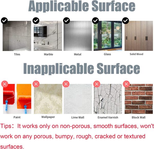 - Tips and Notes for Use – Installation of the suction cup hook requires a towel to wipe dust and vapor from the wall. It is only suitable for non-porous, smooth surfaces, not for any porous, uneven, rough, cracked or textured surfaces.